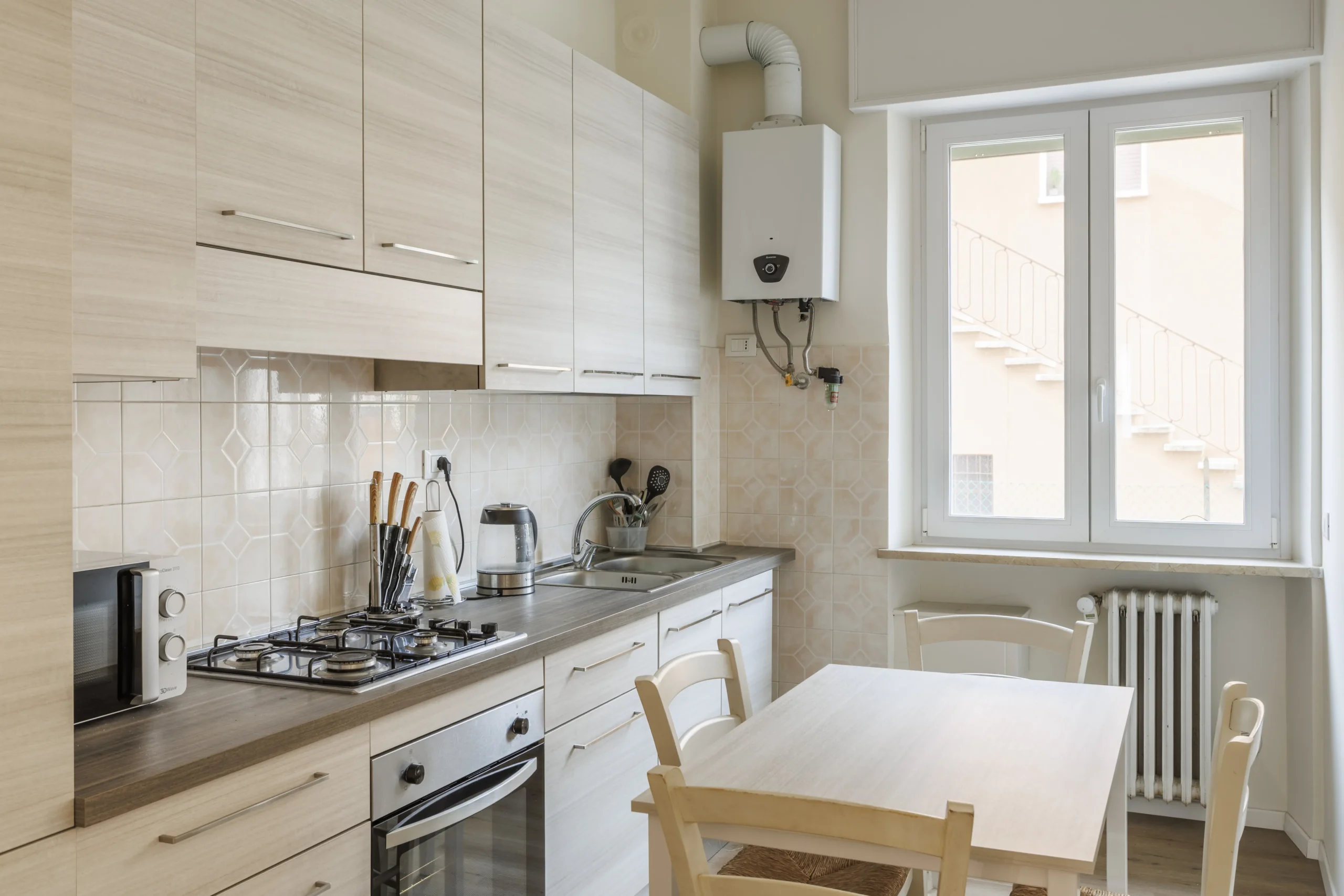• Cucina attrezzata con forno, microonde, frigorifero e freezer