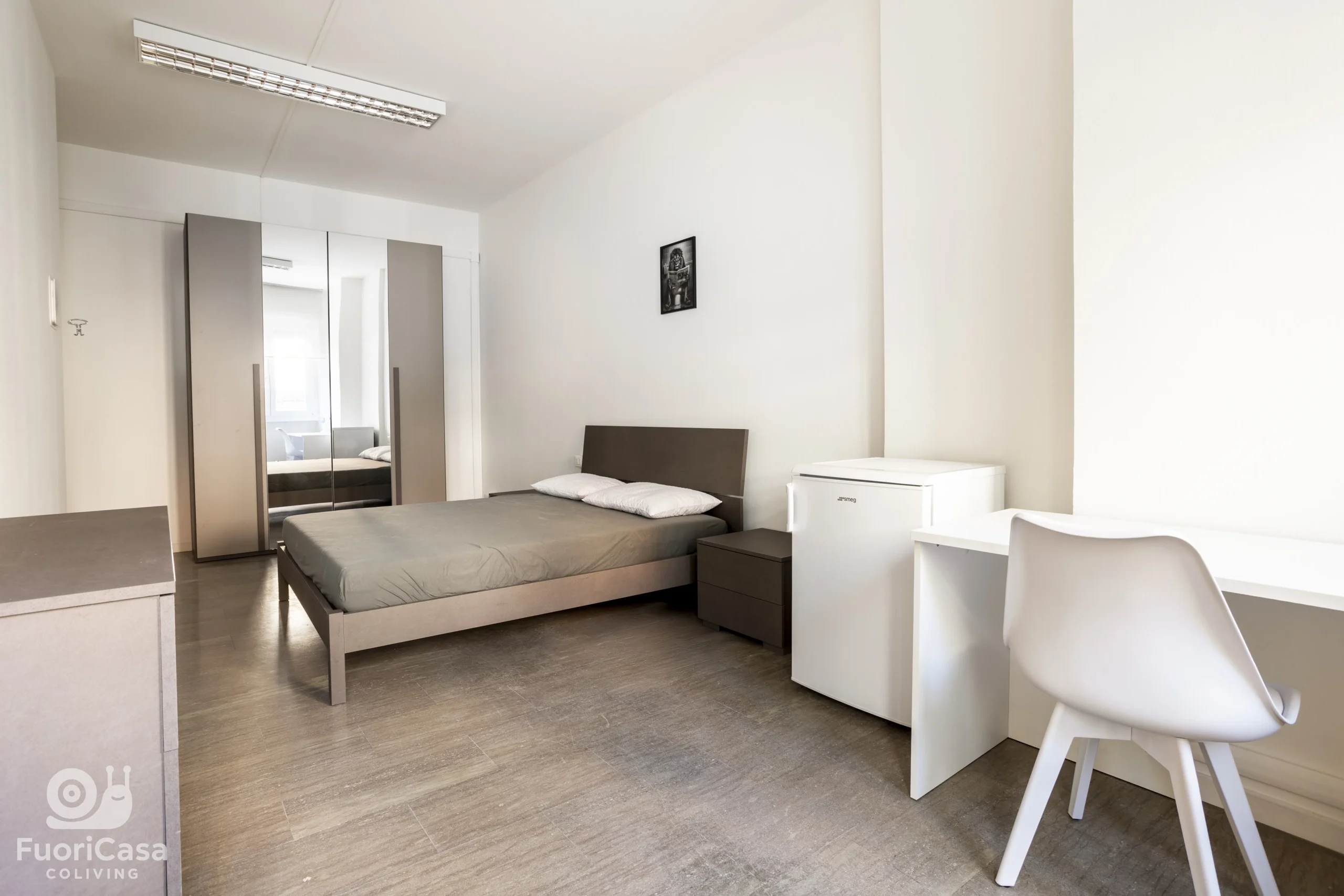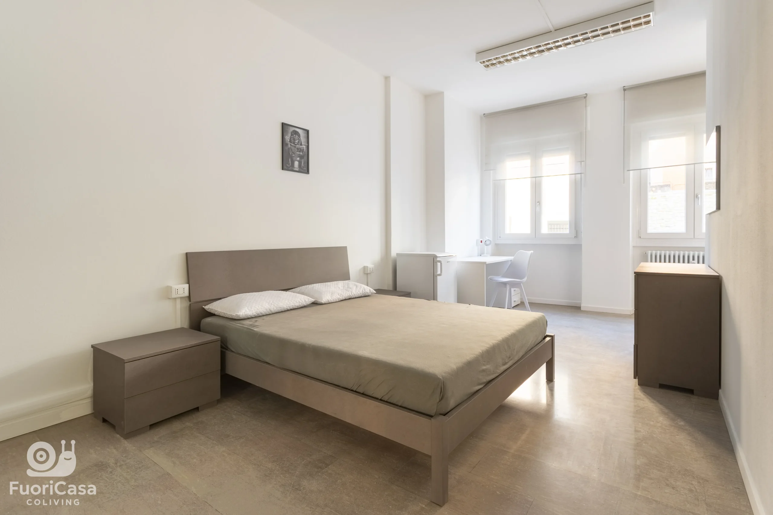 La struttura si trova al piano terra rialzato ed è composta da 11 camere singole arredate, 5 bagni con 3 docce, un’ampia cucina comune completamente attrezzata e un grande terrazzo condiviso. La camera è dotata di mini frigo.