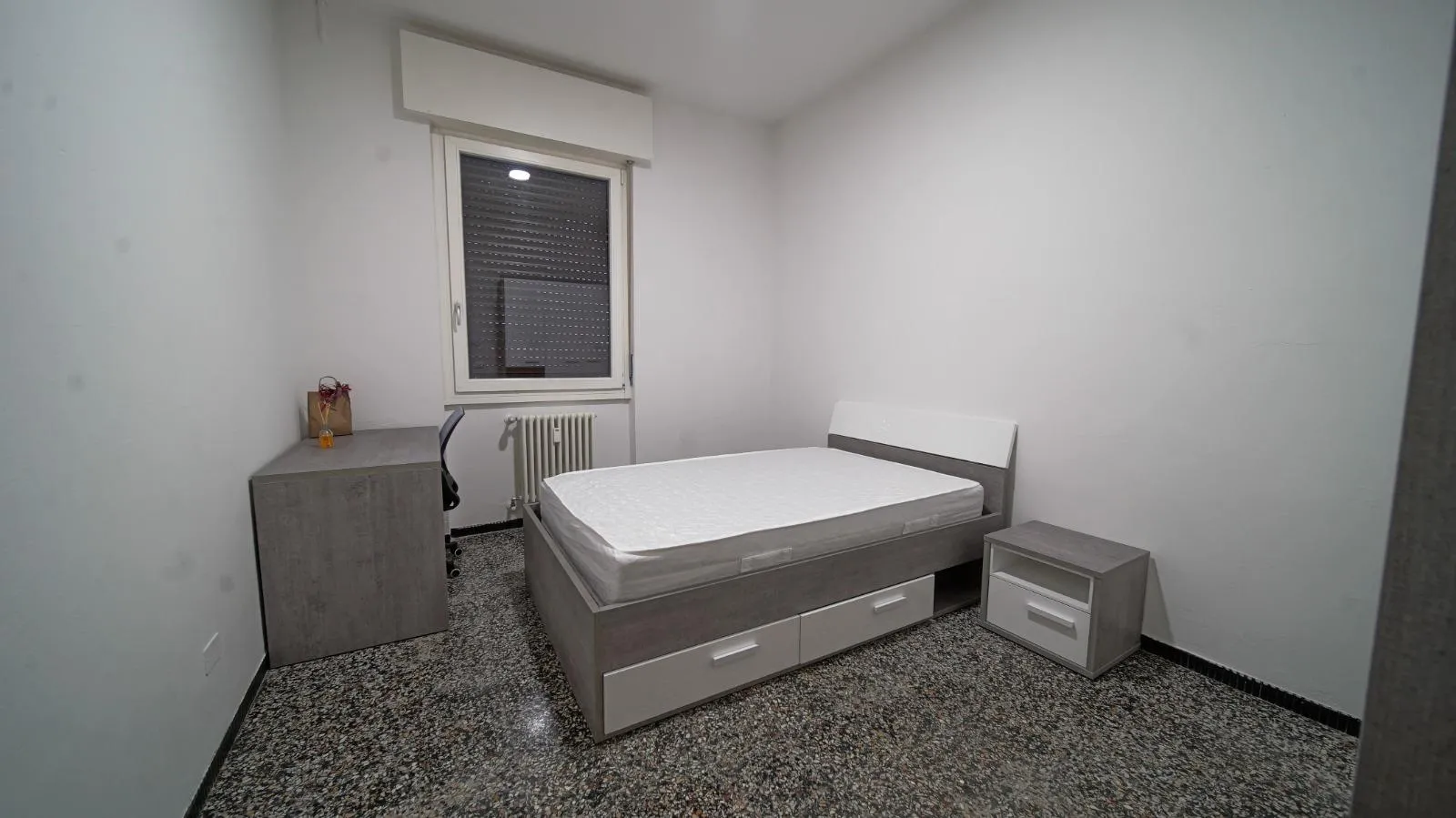 • Camera 2: 12,6 m² con letto a piazza e mezza – Canone 400,00 €/mese di affitto + 140,00 €/mese utenze (tutto incluso)